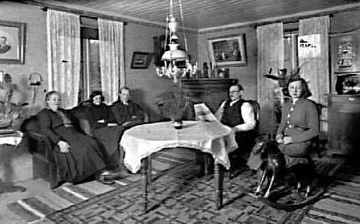 MOR OCH FAR MED TRE VUXNA BARN I ETT RUM.