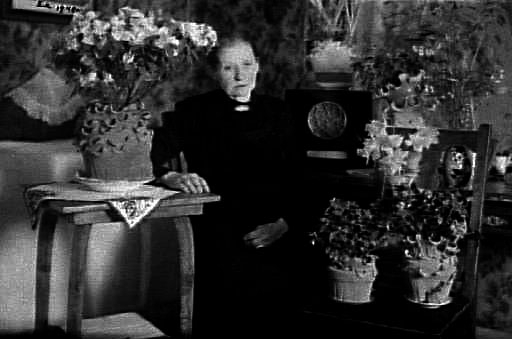 EN KVINNA SITTER OMGIVEN AV SINA BLOMMOR