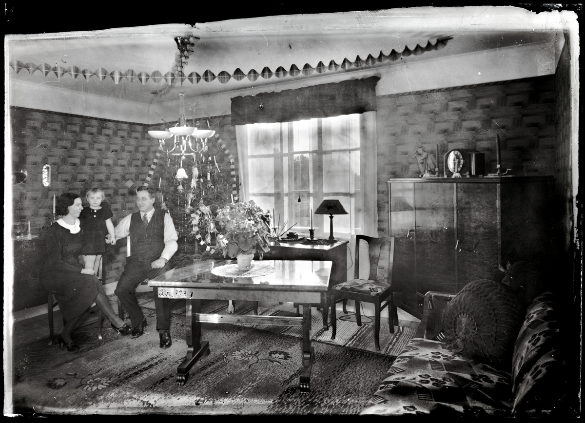 Familj vid julgran