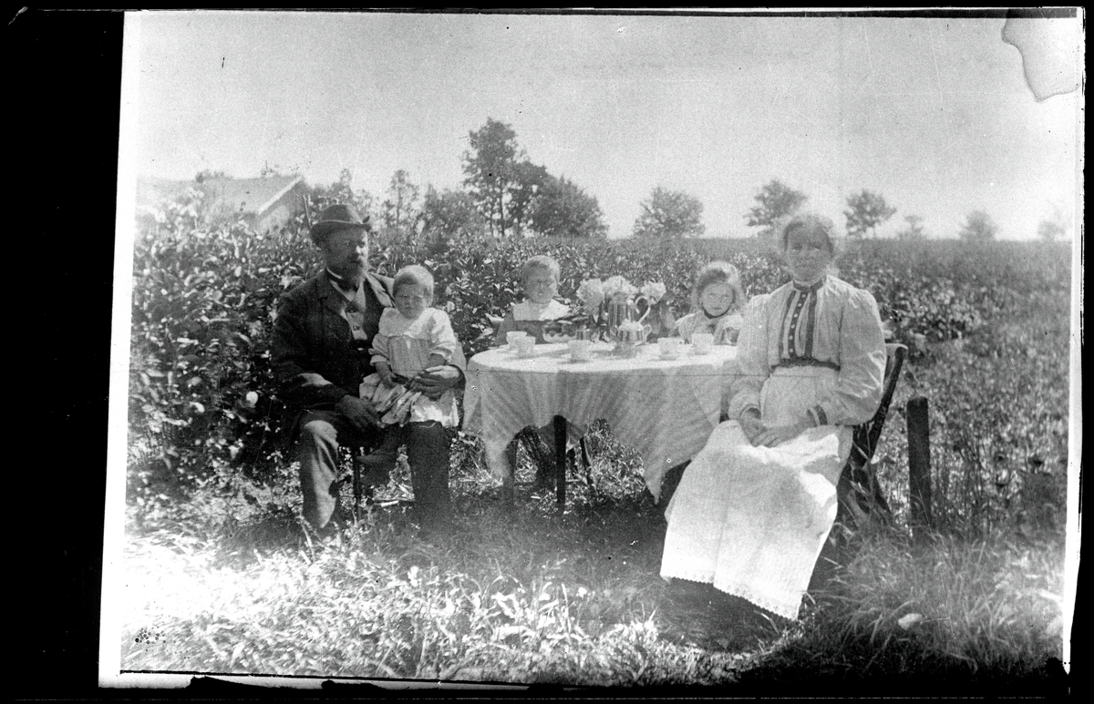 Familj runt kaffebord