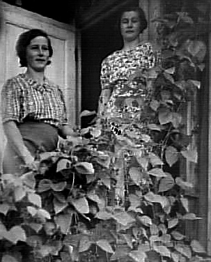 TVÅ KVINNOR VID EN KLÄTTERVÄXT