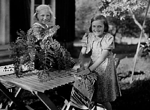 TVÅ BARN VID ETT TRÄDGÅRDSBORD