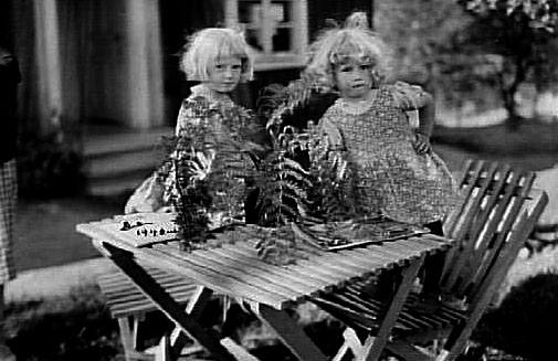TVÅ SYSKON VID ETT TRÄDGÅRDSBORD