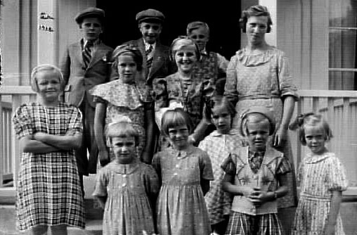 EN SÖNDAGSSKOLEFRÖKEN MED SINA ELEVER.