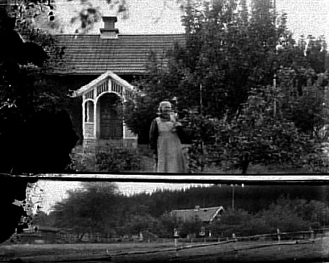 EN KVINNA UTANFÖR ETT BOSTADSHUS