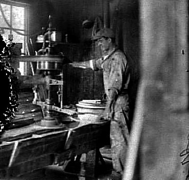 ARBETAR MED EN MASKIN SANNOLIKT PÅ ETT STENHUGGERI.