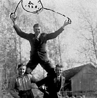 EN YNGLING SOM STÅR PÅ AXLARNA PÅ SINA KAMRATER