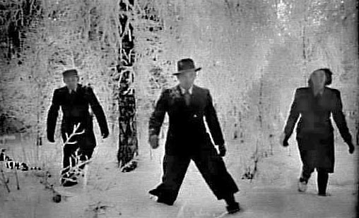 TRE UNGDOMAR I SNÖN I SKOGEN