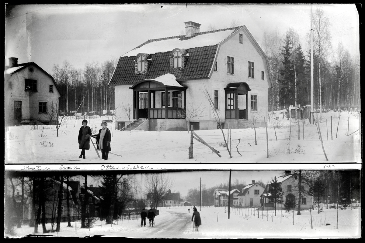 Två flickor framför hus i Otterbäcken