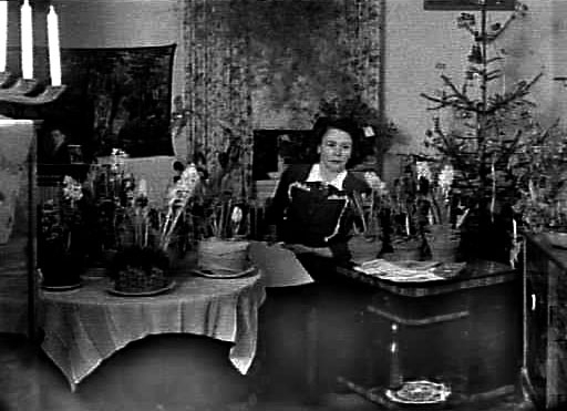 EN KVINNA BLAND BLOMMOR PÅ SIN FÖDELSEDAG