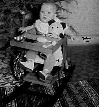 ETT LITET BARN I EN BARNSTOL INTILL JULGRANEN