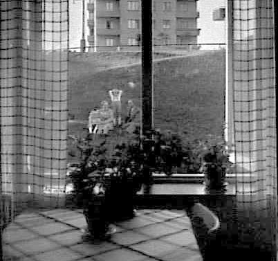 UTANFÖR I GRÄSET SITTER EN FAMILJ
