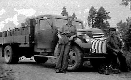 TVÅ MÄN VID EN LASTBIL MED DRICKABACKAR PÅ R 512