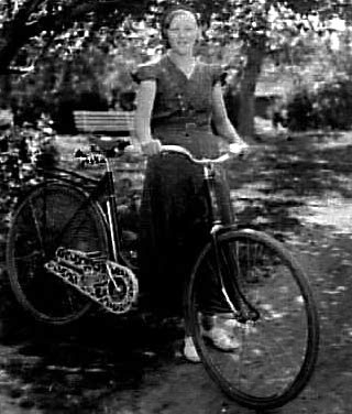 EN KVINNA MED EN CYKEL.