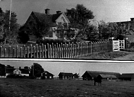 EN GÅRD MED ETT RIBBSTAKET OMKRING TRÄDGÅRDEN.
