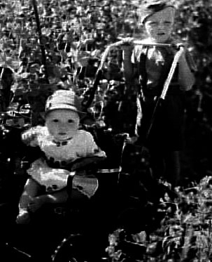 TVÅ BARN VAR AV DEN ENE KÖR DEN MINSTE I EN KÄRRA UTE PÅ POTATISÅKERN.