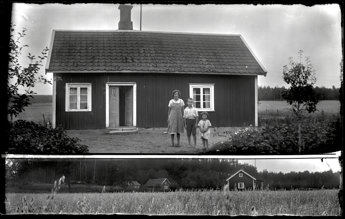 Familj framför torp