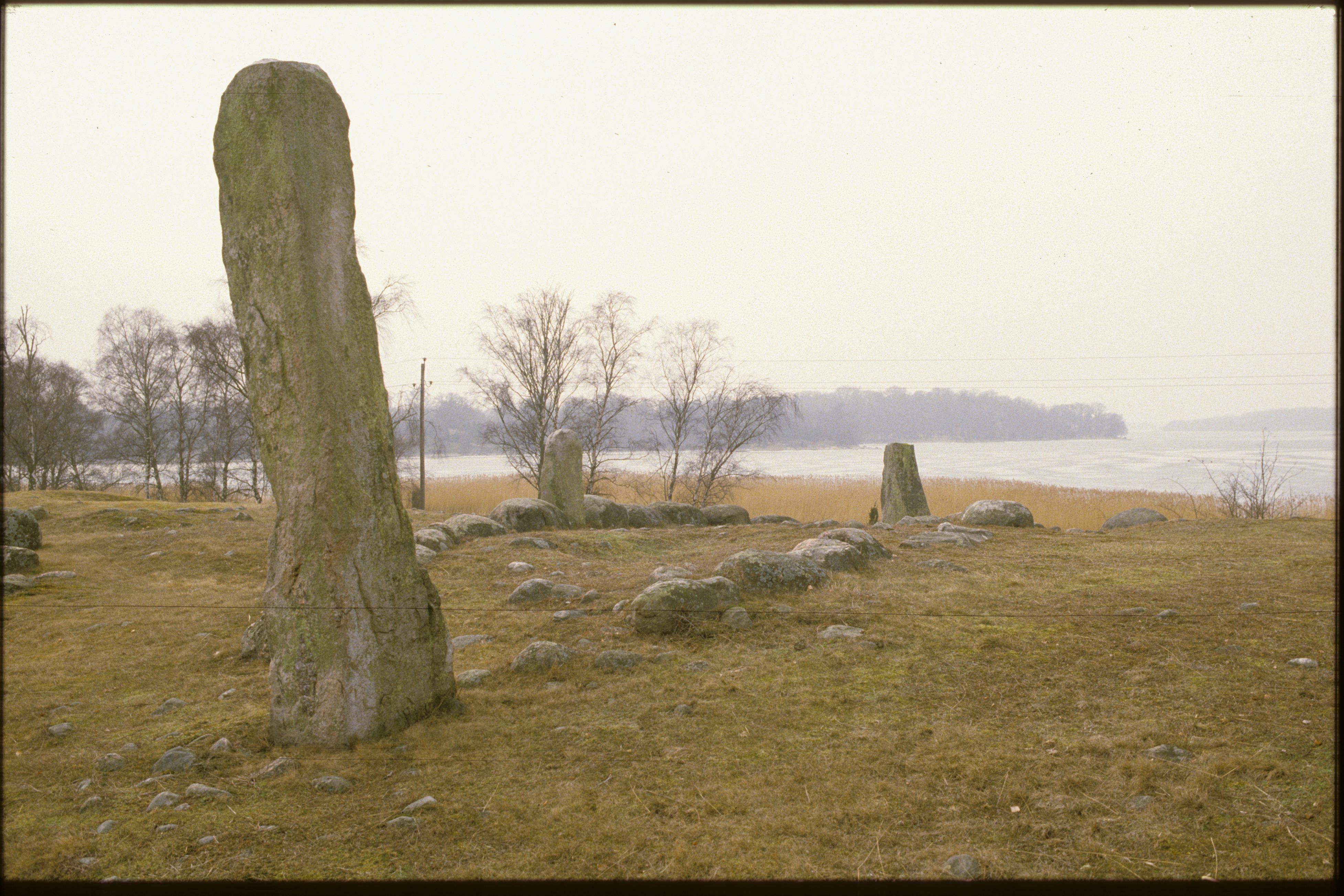 RAÄ-nummer Förkärla 12:1. Gravfält, bestående av 110 fornlämningar, vilka utgörs av stensättningar, skeppssättningar, treuddar, stenrader och resta stenar.