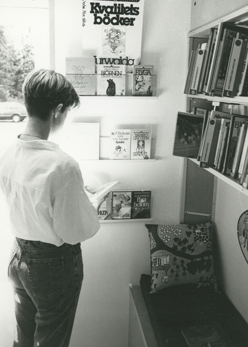 Interiör. Bokbussen. Ambulerande bibliotek. Bibliotekarie.