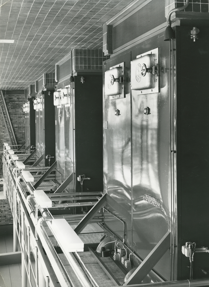 Interiörbild. Värmepannor tillverkade på Gustavsbergs Fabriker. Okänd plats.<br>