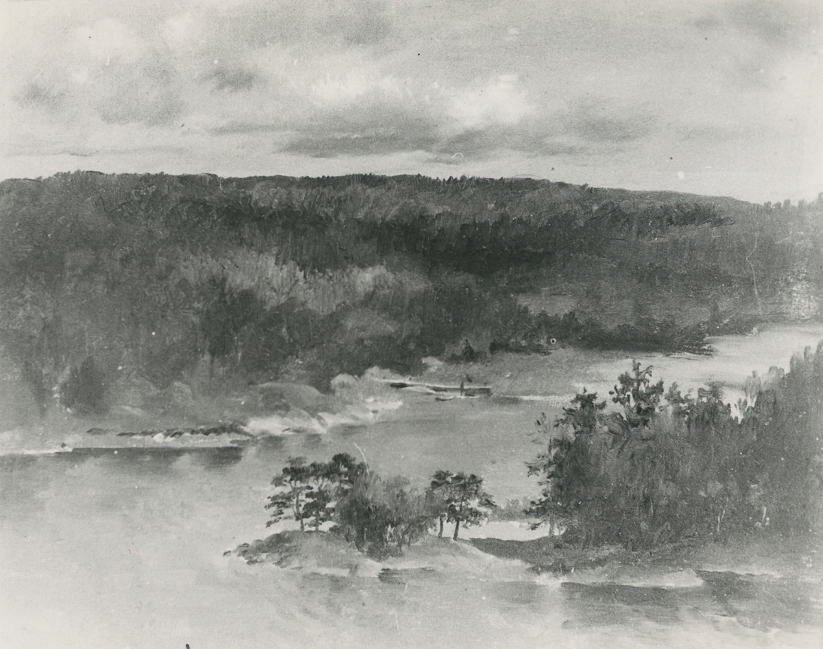 Exteriör. Farsta bro, södra landfästet. Målning av Frans Meder.