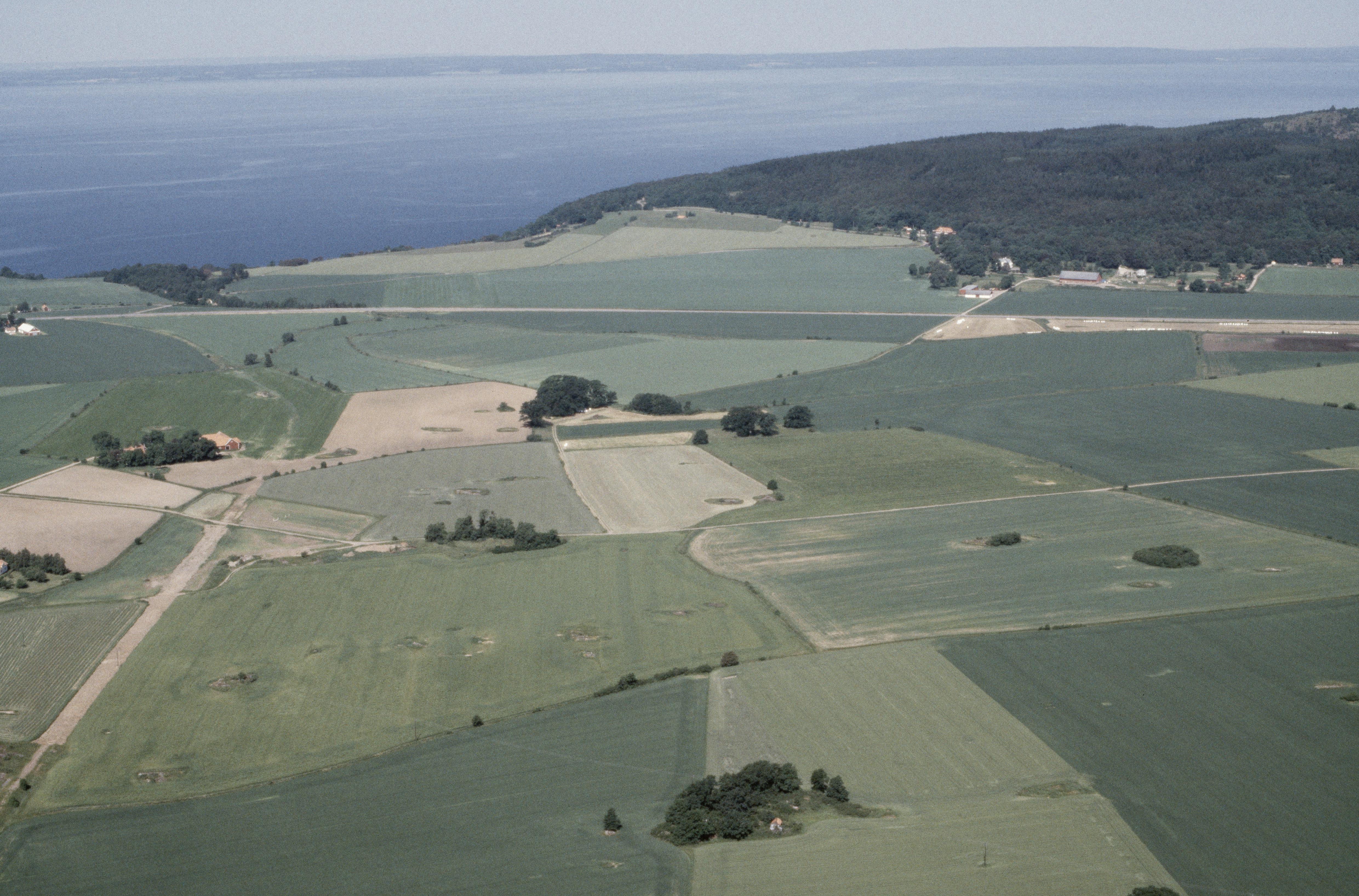 Alvastra kloster. I bildens övre del till höger klosterruin RAÄnr Västra Tollstad 1:1. Bilden är tagen mot (väderstreck): V