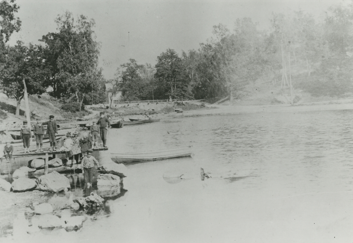 Exteriör. Vid Farstavikens inlopp, Stenbron vid Gustavsbergs kyrka innan Pinnbron byggdes.