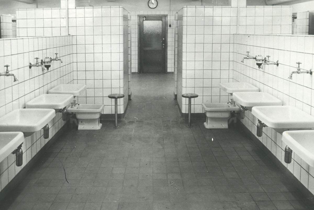 Titel: Interiör. Dusch/tvättrum, Hushållsporslinsfabriken.
