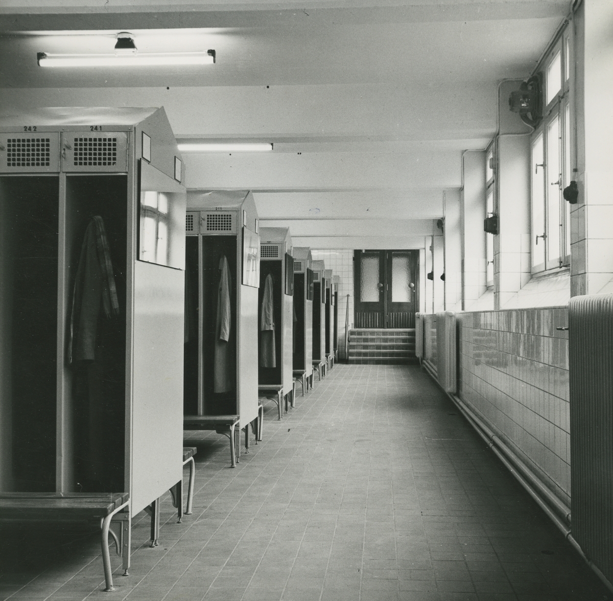 Titel: Interiör. Omklädningsrum, Hushållsporslinsfabriken.
