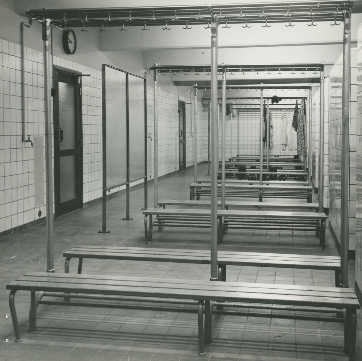 Titel: Interiör. Omklädningsrum, Hushållsporslinsfabriken.