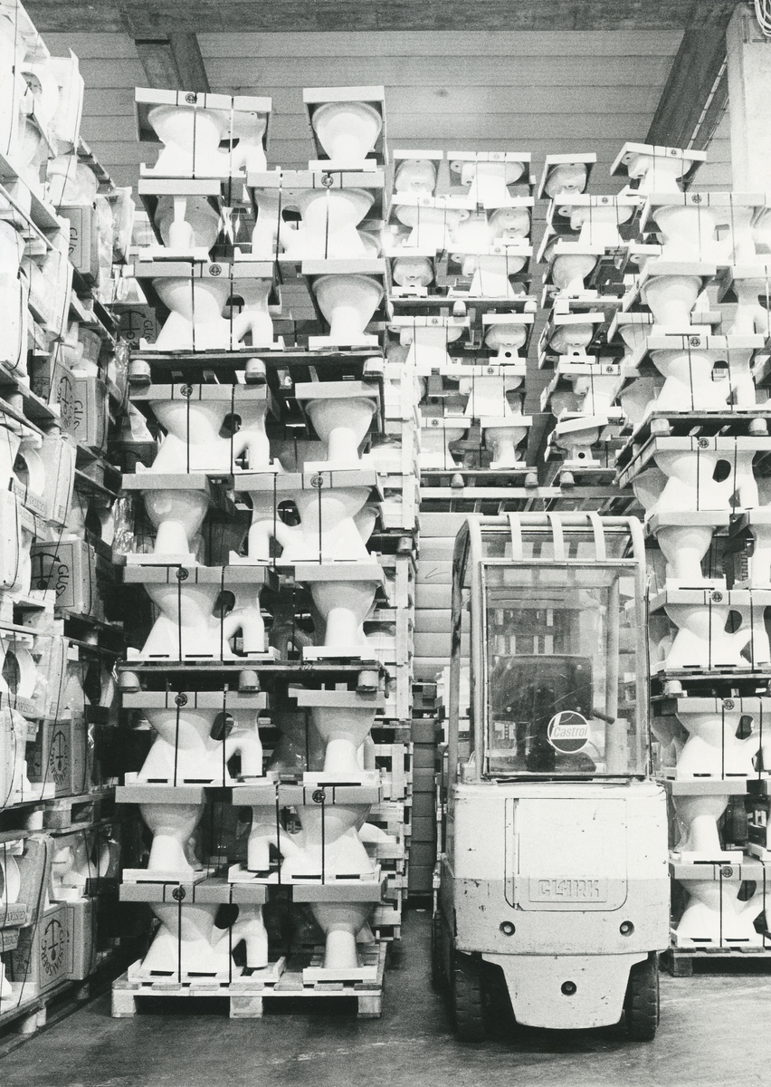 Interiör, Sanitetsporslinsfabriken. Lastning av wc-stolar.