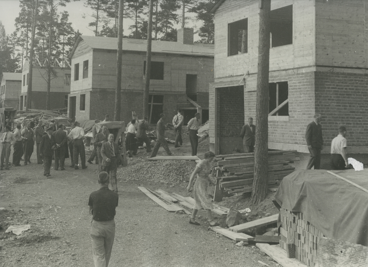 Byggnation av bostadshus, Egnahem på Munkvägen, Lugnet.
