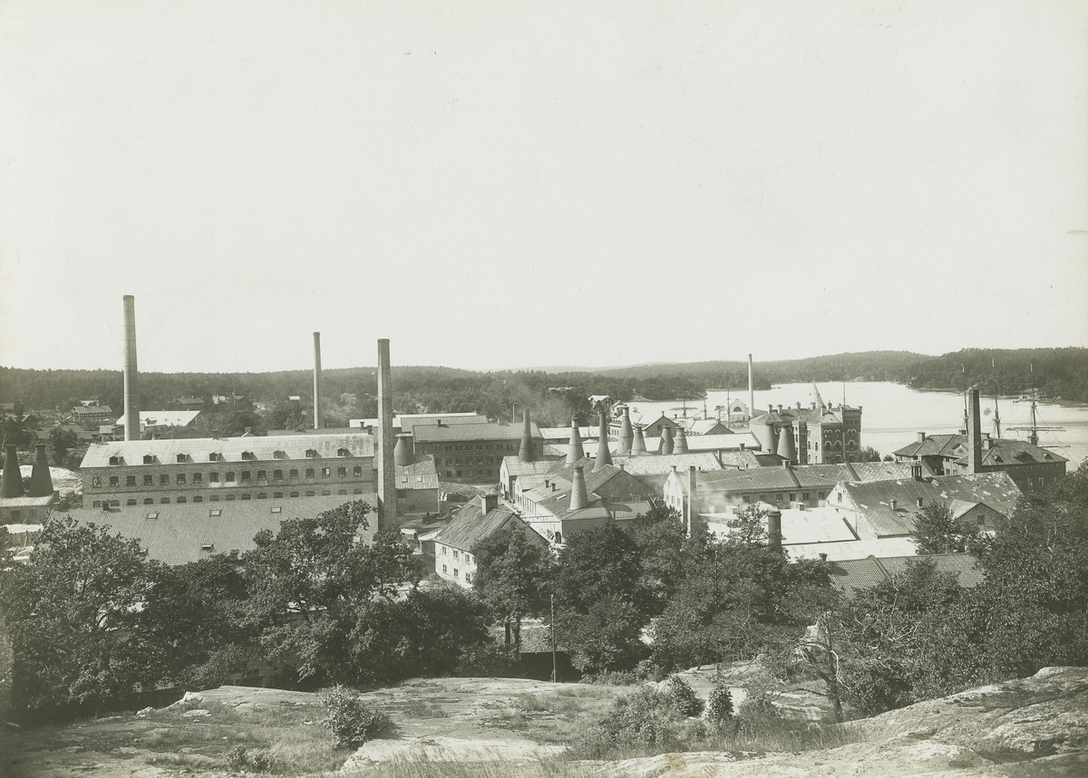 Exteriör. Gustavsbergs Fabriker. Utsikt över fabriksområdet.