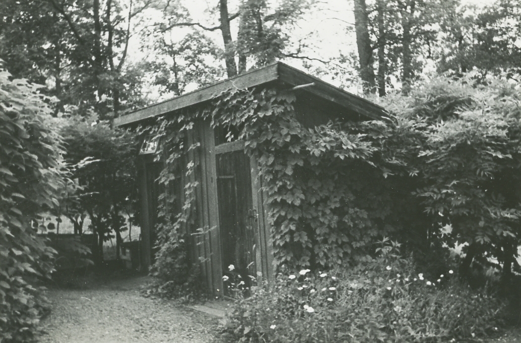 Exteriör. Vedbod och avträde för Ekedalsvägen 7.
