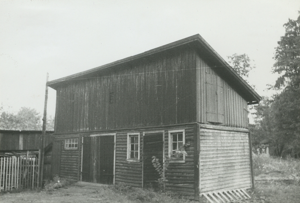 Extgeriör. Vagnsskjul för Bageriet, Bagarvägen i Gustavsberg utmed Bagarns träsk.
