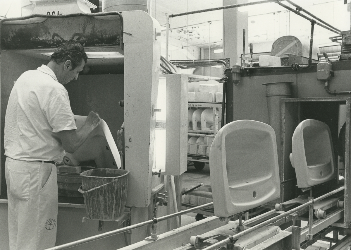 Interiör, Sanitetsporslinsfabriken. Avsyning av handfat.