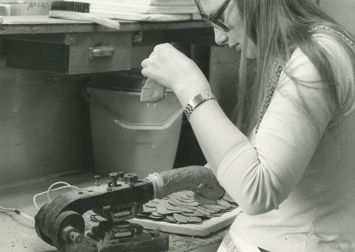 Interiör, Hushållsporslinsfabriken. Formning av lera.
