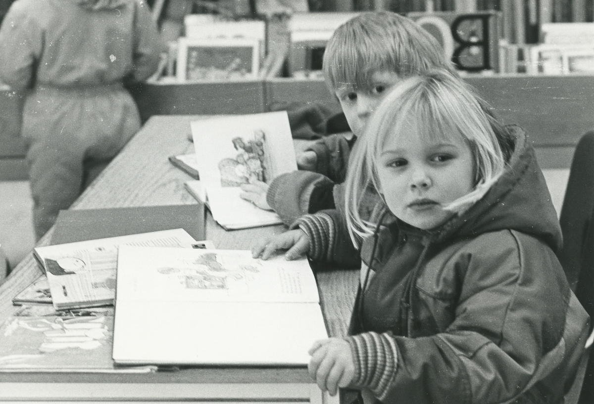 Interiör. Bokbåten Gurli. Låntagare, barn.