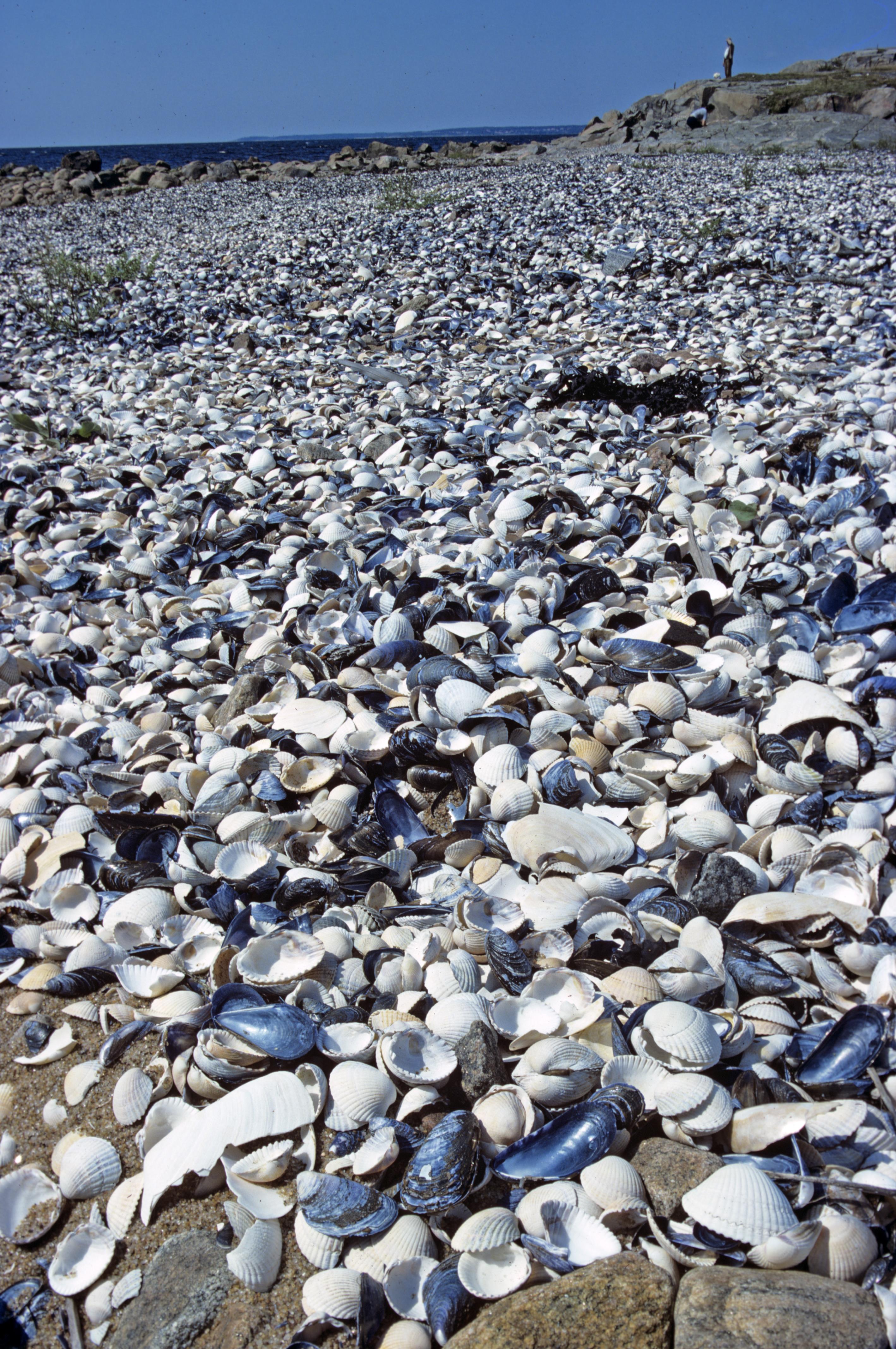 Snäckskal längs stranden. Bilden troligen från mitten av 1970-talet.