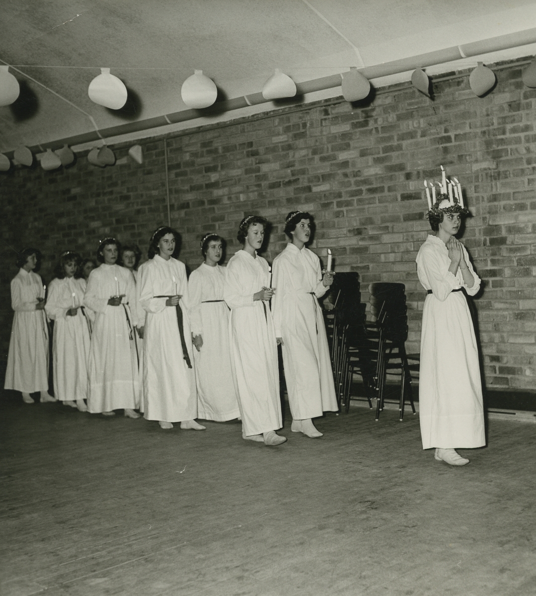 Interör. Luciafirande i Atombombsskyddsrummet Bergasalen i Kvarnberget, som efter 1955 inreddes som samlingsssal.