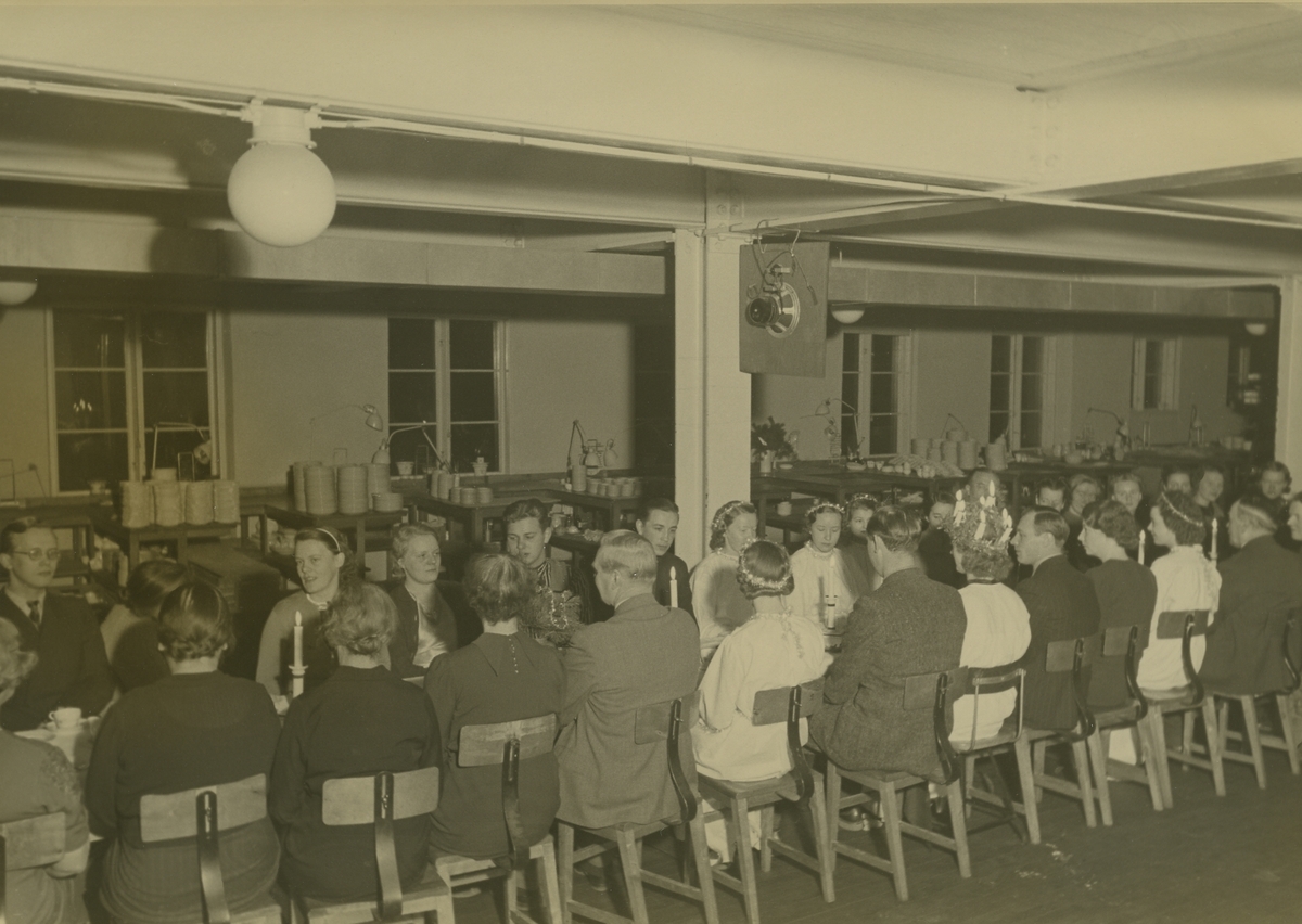 Interiör. Troligen Målarsalen på Hushållsporslinsfabriken.