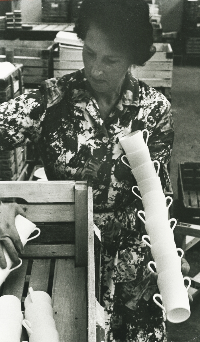 Interiör, Hushållsporslinsfabriken. Sortering av koppar.