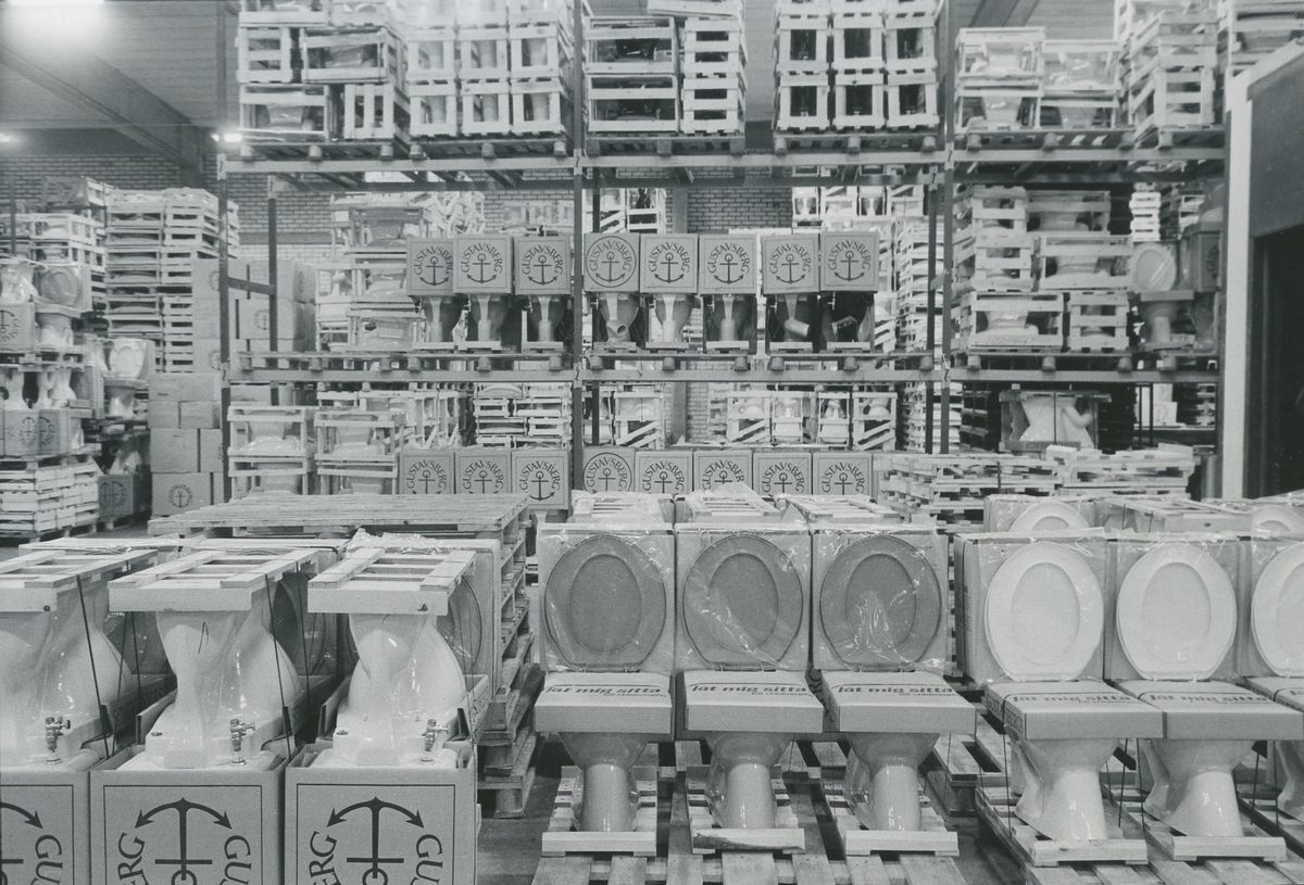 Interiör, Sanitetsporslinsfabriken. Packat och lagrat sanitetsgods.<br>