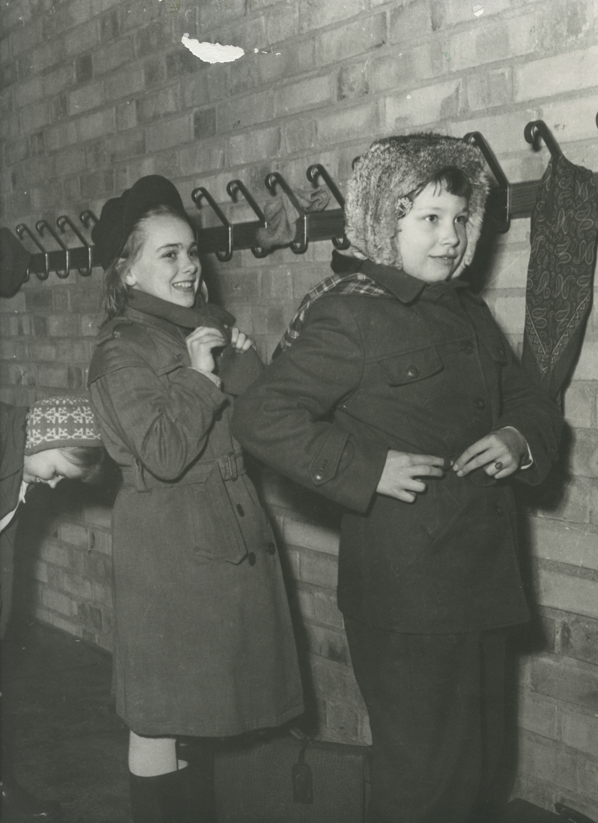 Skolbarn i vinterkläder, Kvarnbergsskolan?