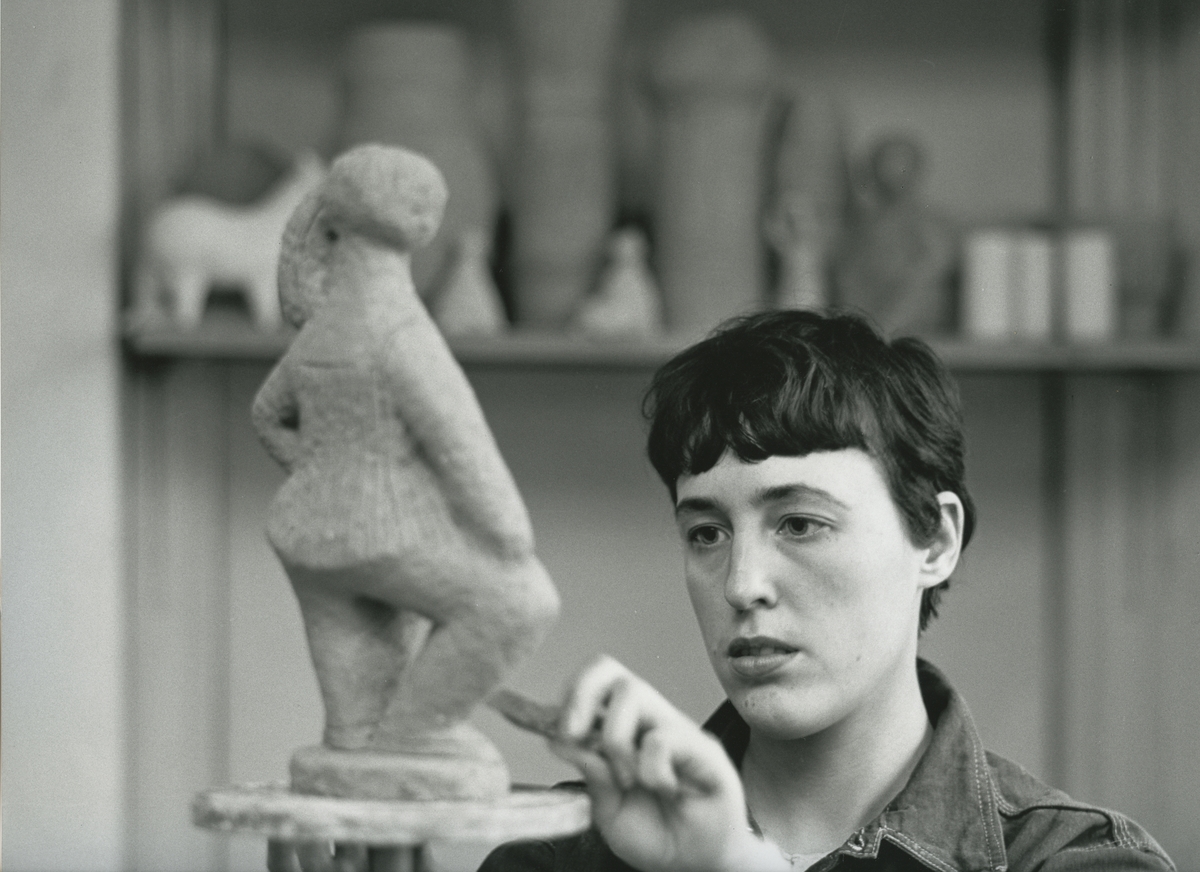 Keramikern Lisa Larson. Skulpering av lerfigur.