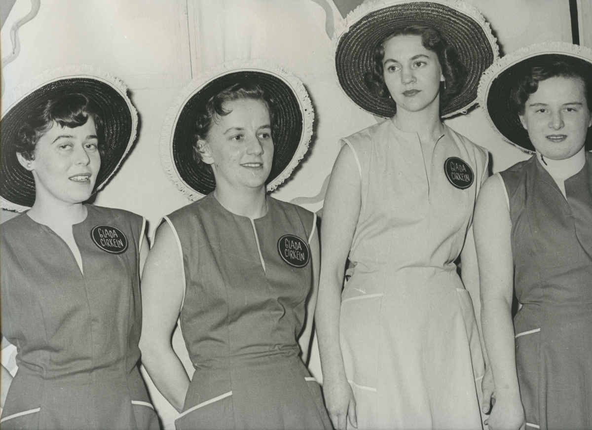 Butiksanställda gör reklam för Cirkelkaffe. Under 1955 såldes drygt 19 ton cirkelkaffe i Värmdös Konsumaffärer.