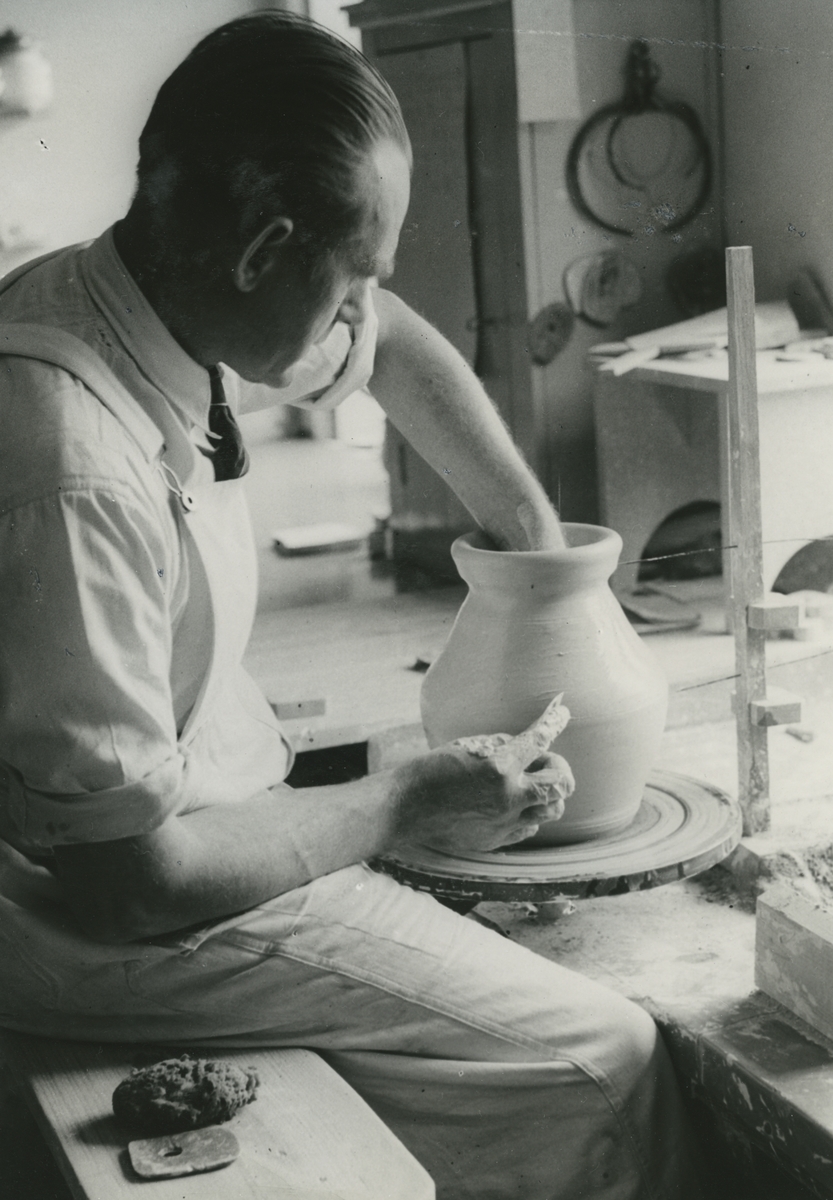 Interiör porslinsfabriken. Berndt Friberg drejar.