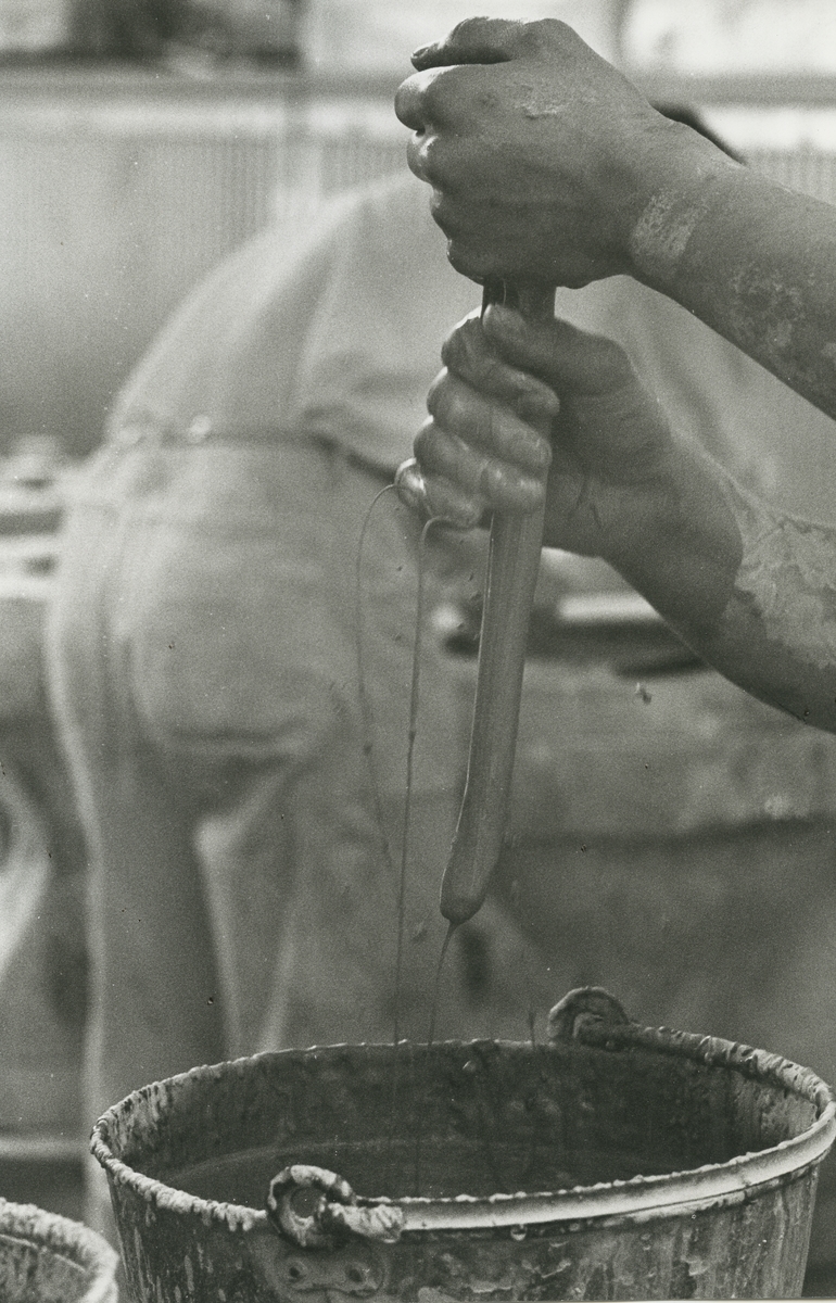 Interiör. Hushållsporslinsfabriken. Beredning av gjutslamma.<br>