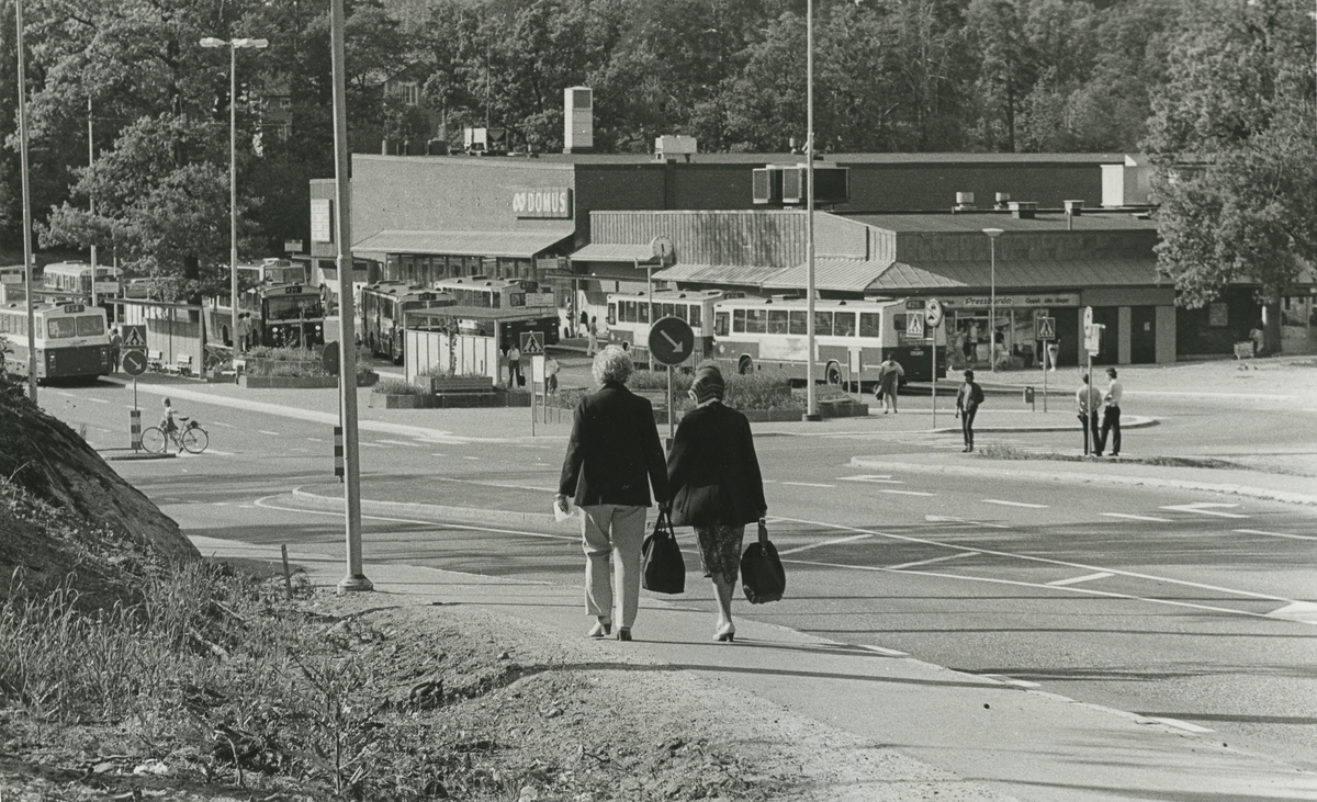 Busshållplatsen och Domus i Gustavsbergs Centrum.
