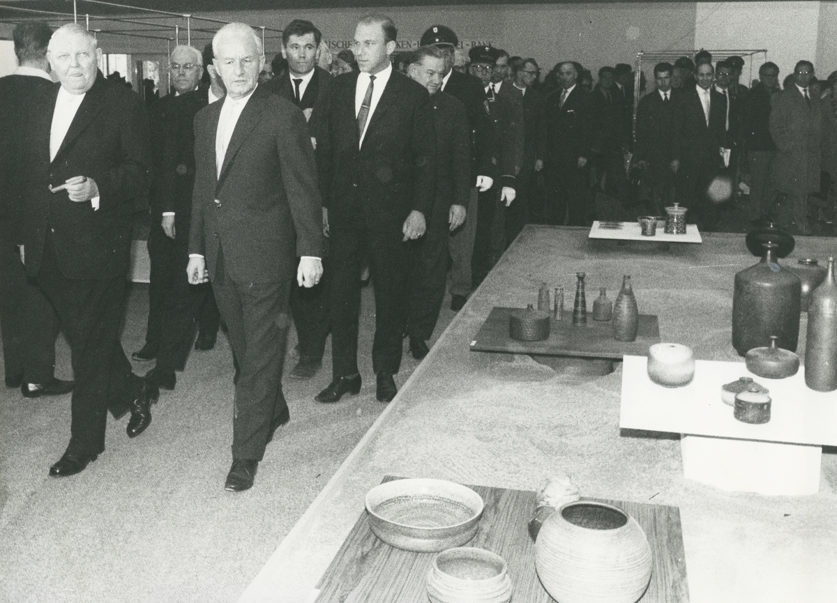 Interiörbild. Invigning av Internationella Hantvrksmässan i Munchen av minister Dr. Erhard. 1963. Okänd lokal.
